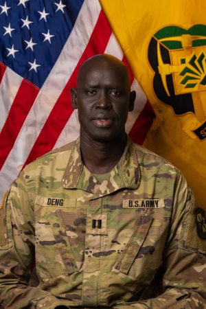 From January 2012 to June 2013, while in the Army Reserve while on Active-Duty Operation Support (ADOS), he serves as assistant Operations Officer 707th Military Intelligence Battalion, Fort Eisenhower, GA.  From July 2013 to September 2017, while in the US Army Reserve (ADOS), CPT Deng worked as an Intelligence Analyst with 706th MI Group, Fort Eisenhower, GA.  From October 2017 to June 2018, CPT Deng served as the Army Field Support Brigade Intelligence Officer and Security Manager at Camp Rifjan, Kuwait.  From June 2018 to June 2019, CPT Deng served as Intelligence and Operational Officer for Army Field Support Battalion in Bagram, Afghanistan. From June 2019 to January 2021, CPT Deng served as a Battalion Human Resource Officer at Fort Huachuca, AZ.  From April January 2021 to April 2022, CPT Deng served as an Intelligence Officer for the 1st Armored Brigade Combat Team, 1st Armored Division, Camp Hovey, South Korea.  CPT Deng’s most recent assigned was from April 2022 to July 2024 serving in the 501st Brigade Support Battalion, 1st Armored Brigade, 1st Armored Division at Fort Bliss, Texas.